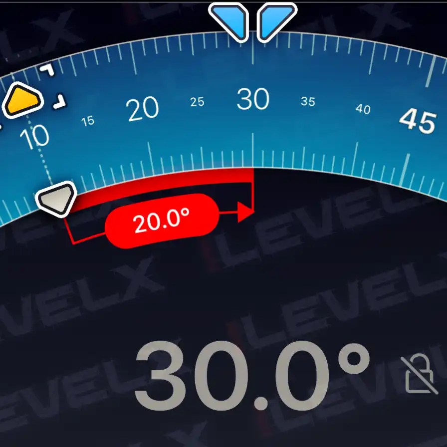 Use the clinometer the measure angles along all edges of your phone. You can set a target angle by moving your finger across the display. Additionally you can store up to 5 angles in the angle list and recall them quickly as target angles.